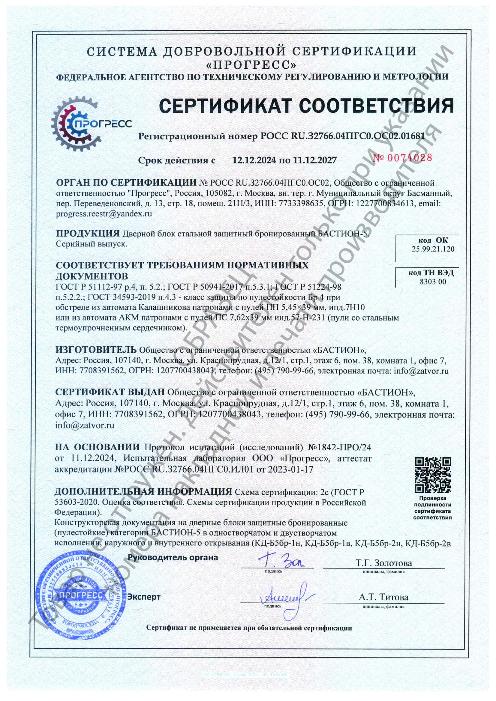 БАСТИОН-5. Сертификат на пулестойкость класс BR4 по ГОСТ Р 51112-97.jpg