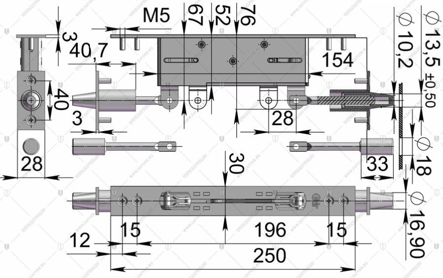 Технической особенностью замка является специальный крепеж цилиндра, что повышает степень его защищенности, однако делает невозможным смену цилиндрового механизма без демонтажа внутренней панели. С эксплуатационной точки зрения замок очень мягкий, тихий, обеспечивает постепенное выдвижение ригелей при повороте ключа или вертушки цилиндрового механизма. Привод от цилиндра к хвостовику организован через набор шестерёнок, что также повышает его устойчивость к некоторым видам силового взлома.