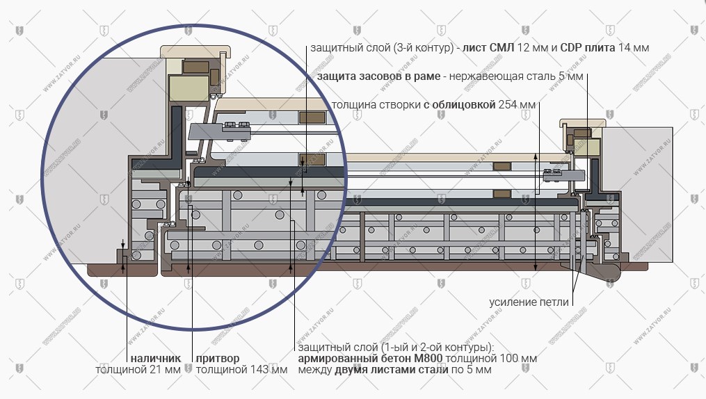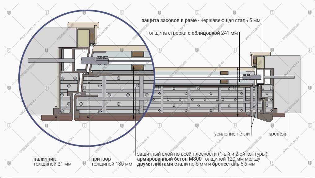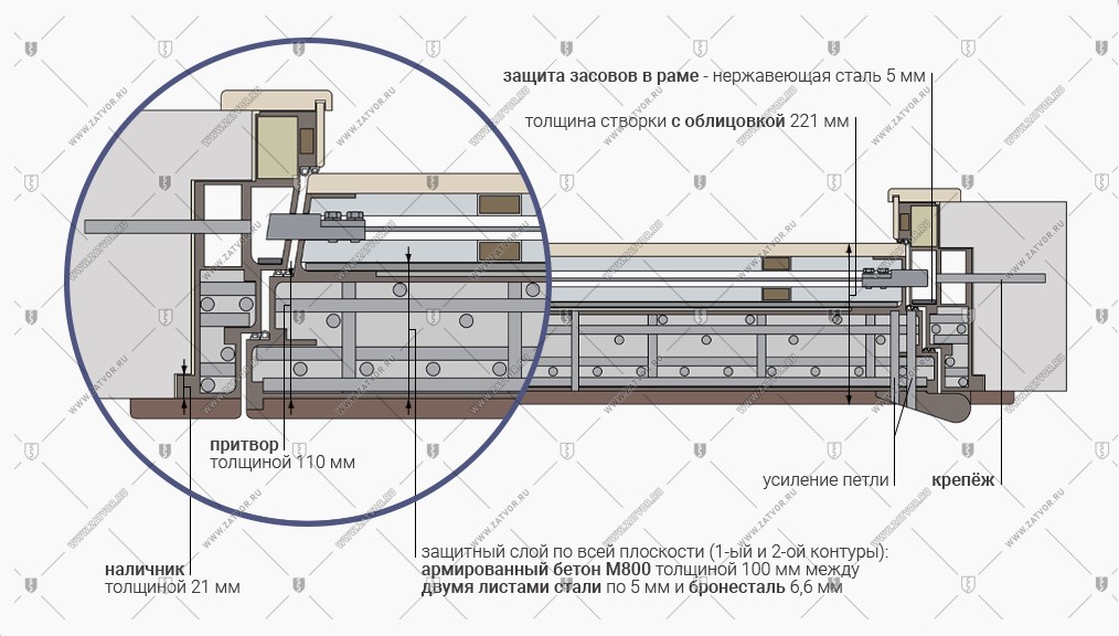 - защита запирающей системы из бронестали 42ХСНМА или абразивостойких плит CDP,