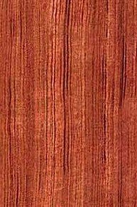 Свойства древесины. Несколько сходна с красным, махогониевым, деревом мелкослойных разновидностей. По цвету древесина варьирует от розоватого до кроваво-красного или красно- коричневого. Заболонь светлее по тону, обычно шириной 50-57 мм. Древесина у некоторых кряжей с прямыми волокнами, у других с очень оригинальным пестрым рисунком.